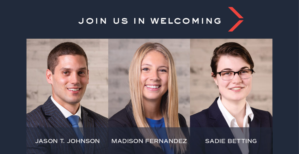 Join us in welcoming new attorney Jason T. Johnson and 2021 Summer Associates Madison Fernandez and Sadie Betting.